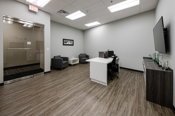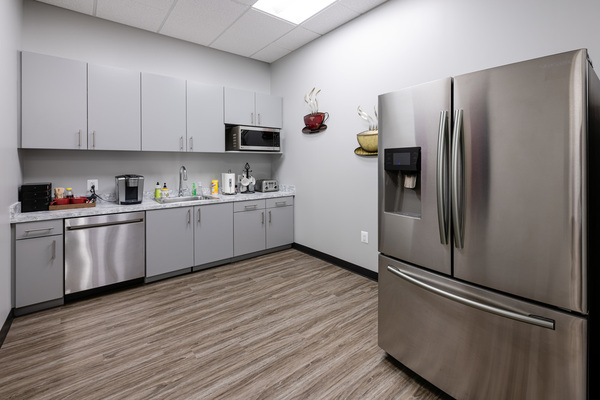 This is a great building with lots of parking, cafe off the lobby, east facing with tranquil view on the main floor. Beautiful newly built-out first-floor office space with reception area, conference room, three private offices and gorgeous open area. The space is turn-key with furniture, kitchen, coffee/wine bar w/ 3 beverage refrigerators, 6 flat screen TV's, Audio Speakers and wired & wireless.