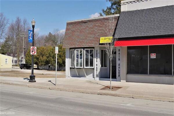 Drive up retail building on the Main street of downtown Richmond, Mich. Currently set up as a fully equipped hair salon.